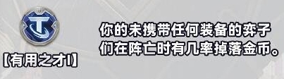 9、有用之才I:你的未携带任何装备的弈子们在阵亡时有几率掉落金币。