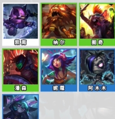 凯南、纳尔、图奇、潘森、妮蔻、阿木木、薇古丝
