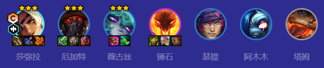 莎弥拉、厄加特、薇古丝、锤石、瑟提、阿木木、塔姆