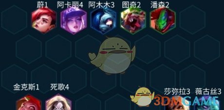 9级有裁决天选拉高上限可以上九补最后的裁决开6裁决,图奇如果前排站不住了,后置放也行,这时候不只是他C了,还有死歌阿卡丽一起了。