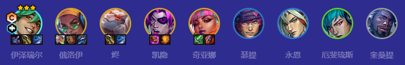 伊泽瑞尔、俄洛伊、烬、凯隐、奇亚娜、瑟提、永恩、厄斐流斯、奎桑提