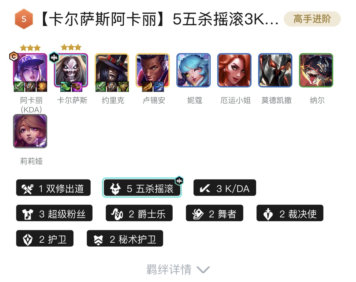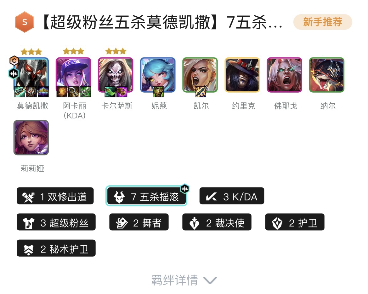1DJ娑娜、3爵士乐、3K/DA、3超级粉丝、3法师、2真实伤害、2大腕射手、2护卫、2秘术护卫、1高能流行