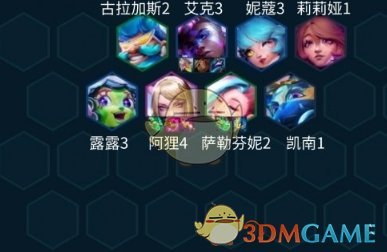 今天给大家分享的是一套不怕切的法师阵容,常规玩法其实阿狸你站中间,有露露控制基本阿卡丽飞着飞着被控制下阿狸就能带走她了。今天这套就是找萨勒芬妮来个扎堆铁王八的玩法,不断回血又肉又有伤害。
