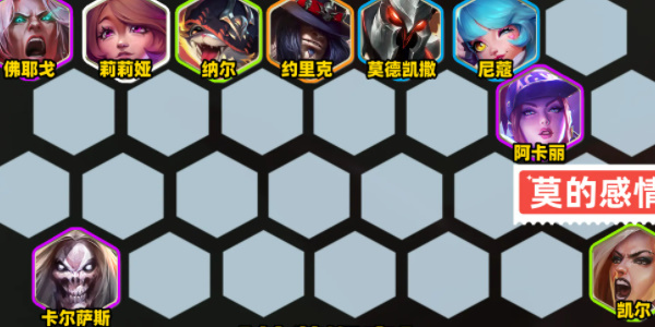 佛耶戈、莉莉娅、纳尔、约里克、莫德凯撒、妮蔻、阿卡丽、卡尔萨斯、凯尔