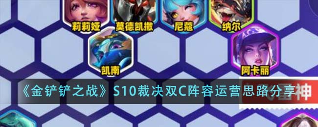 金铲铲之战S10裁决双C阵容运营思路是什么?很多小伙伴们在玩金铲铲之战的时候都热衷于体验更多的阵容玩法,在众多的阵容玩法之中,s10版本裁决双c阵容也是非常出色的。以下是小编为大家分享的金铲铲之战s10裁决双c阵容装备搭配攻略,有需要的小伙伴们可以参考参考。