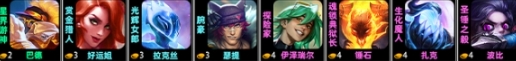 8人口成型,不是心之钢赛季之星的话,有血量优势可以把爵士的位置或者锤石换成心之钢;拉克丝也可以选择换成阿木木,但是这样全是前排,会有隐患;没有EZ时,可以用女警,或者也可以选择EZ和女警双C,根据实际的D牌情况来,比较灵活