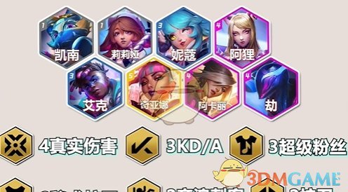 4真实伤害、3KDA、3超级粉丝、2秘术护卫、2音浪刺客、2护卫
