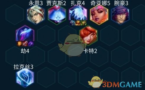 劫的伤害偏单体爆发,所以后续需要法装来给拉克丝补伤害帮助清场。甚至打后排脆的阵容我们还能选择器给拉克丝,大家一起放激光,对阵比较灵活,所以学了可以根据对位去调整来取得优势。吃分非常简单,但是要吃鸡更多要看二星五费或者三星劫。