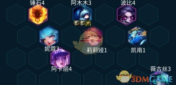 还一种简单简单玩法就是上7开始一直D了,直接找三星的阿木木和薇古丝就行,然后波比和锤石来了就替换下,因为可以先用着低费卡的潘森和安妮。