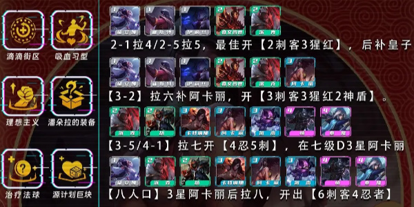 1、[2阶段] 2-1拉4/2-5拉5,最佳开[2刺客3猩红)]五级开[2神盾使]。