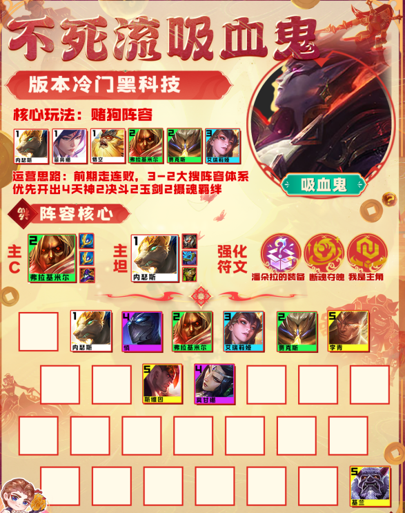 以上天选有什么用什么,狗头方便中期连胜,吸血鬼后期上限稍微高一些