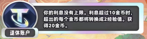《金铲铲之战》S11退休账户海克斯是什么效果?退休账户是金铲铲之战S11新赛季中的海克斯之一,那么S11赛季的退休账户有什么效果,接下来就让我们一起了解一下吧,希望能给大家带来帮助。各位玩家可以参考一下。