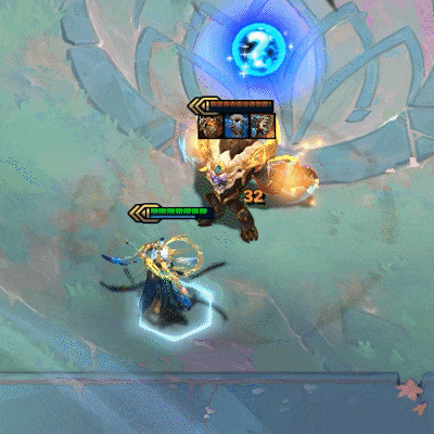 对攻击范围内最多敌人的区域的中心造成魔法伤害,并对命中的敌人造成破法效果。同时对目标相邻的敌方单位造成魔法伤害,并同样附加破法效果。