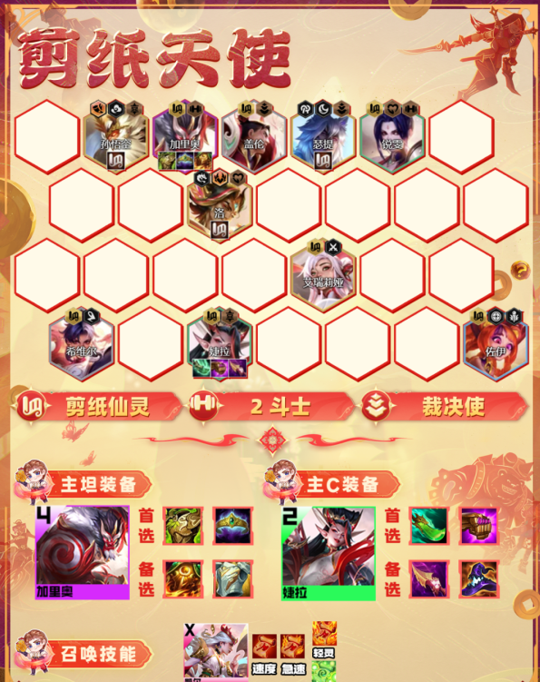 《金铲铲之战》s10剪纸天使阵容怎么搭配?这是一套很好用的上分阵容,玩家们想知道阵容的搭配方法可以参考以下攻略。接下来就由小编给大家详细介绍一下这套阵容的弈子搭配已经运营方法。各位玩家可以参考一下。