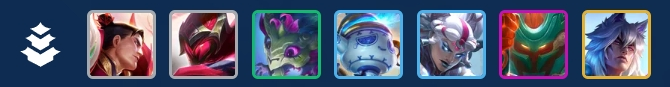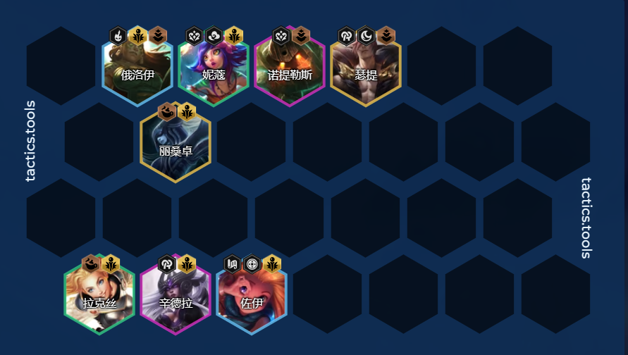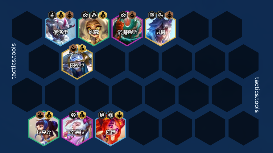 6人口,基本这时候就可以开三尊者过渡了,运气好拿到三费卡的锤石或者俄洛伊搭配就可以开4法师或者三灵魂莲华过度了,前期法师装备可以直接给到阿狸用。