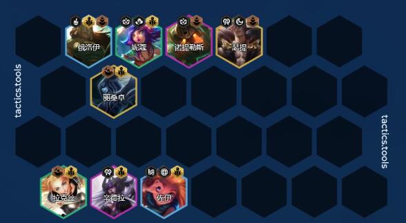 阿狸(1)+拉克丝(2)+妮蔻(2)+俄洛伊(3)+佐伊(3)+辛德拉(4)+冰女丽桑卓(5)