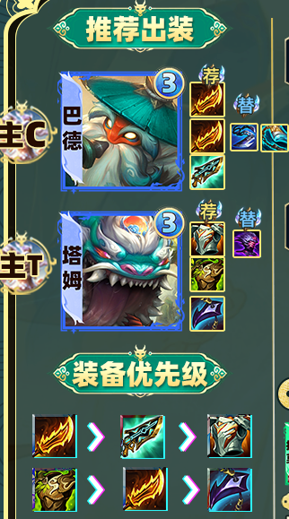 3、4-1升7人口,先大搜出两星巴德和塔姆,有加里奥开4斗士,没加里奥可以用佐伊拼奶妈开2斗士。在7人慢D三星巴德,在5阶段左右D出三星。
