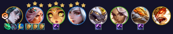 当凯隐和莫甘娜达到二星后,开始存钱升至9级甚至10级,最终目标是找到慧(假设为替代真实游戏内存在的强力五费卡)和洛等顶级卡牌,完成阵容的大成转变。
