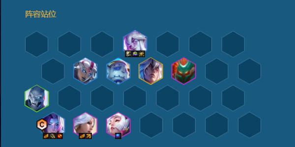 1、三个3费前排谁能3谁带装备,木木尽量站第二排,可以帮主坦回血,厄菲琉斯缩角站即可(如果外面有永恩最好站右下角)