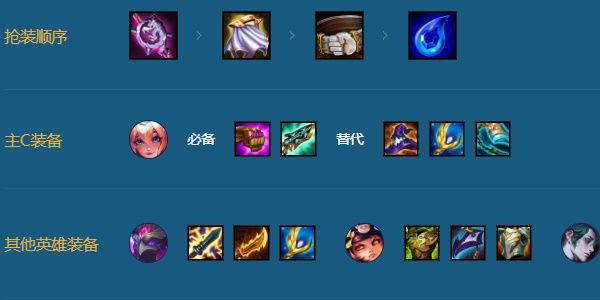 副C沙皇和慧谁二星谁带装备,多余前排装给泰坦,由于安妮技能自带重伤,阵容不需要出鬼书。