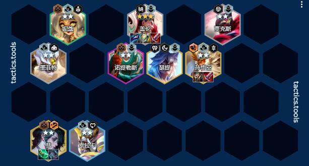 盖伦 + 贾克斯 + 墨菲特 + 妮蔻 + 索拉卡 + 诺提勒斯 + 瑟提 + 孙悟空 + 彗