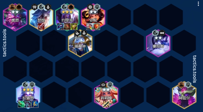 如果上述的点你都做到了,那么四阶段你的血量少说控制在70-80点。然后就根据外面的情况去敲定八级的阵容配置,拉露恩的三星不是必须,很多神谕寒冰和凯隐的情况下+本来升八就比别人慢,我们就可以选择夜幽+灵魂莲华球女C的组合去打,没人要这张卡基本有个大妮蔻就比较好追三。(也可上九追三,主要是看八级来的数量和血量进行抉择。)
