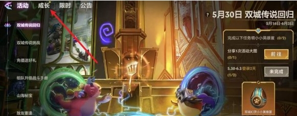 2、然后在活动界面点击上方的“成长”。