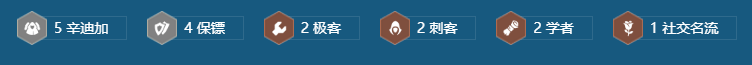 5辛迪加、4保镖、2极客、2刺客、2学者、1社交名流