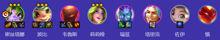 崔丝塔娜、波比、韦鲁斯、莉莉娅、瑞兹、塔里克、佐伊、慎