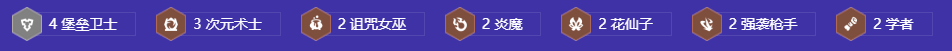 4堡垒卫士、3次元术士、2诅咒汝巫、2炎魔、2花仙子、2强袭枪手、2学者