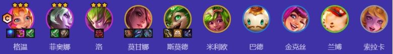 格温、菲奥娜、洛、莫甘娜、斯莫德、米利欧、巴德、金克丝、兰博、索拉卡