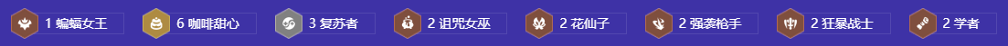 1蝙蝠女王、6咖啡甜心、3复苏者、2诅咒女巫、2花仙子、2强竞枪手、2狂暴战士、2学者