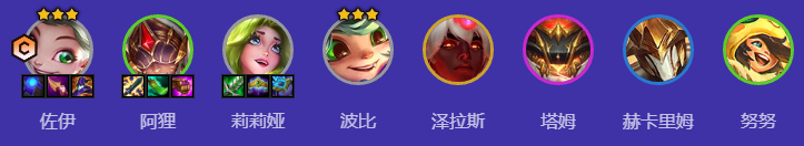 佐伊、阿狸、莉莉娅、波比、泽拉斯、塔姆、赫卡里姆、努努