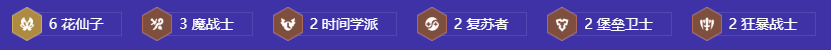6花仙子、3魔战士、2时间学派、2复苏者、2堡垒卫士、2狂暴战士