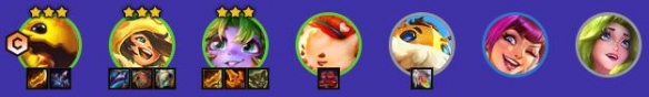 4、7/8/9人口(4阶段后)4-1或者4-2尽量梭哈出三星小炮/克格莫/努努/兰博四张三星后再上人口,有三张三星时也可以先上七级,顺便追金克丝;