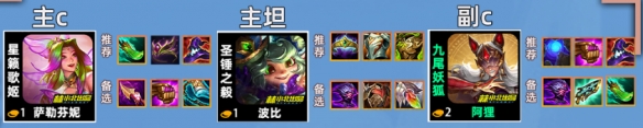 主c萨勒芬妮 搭配 佐伊,波比,莉莉娅,阿狸,人马,塔里克,塔姆组成 4堡垒3命运2花仙2诅咒2学者