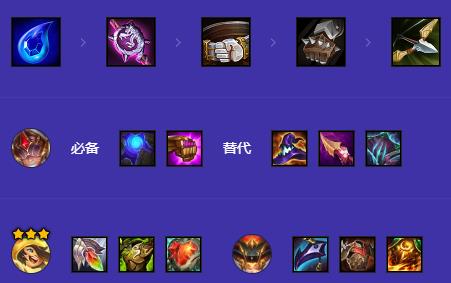 2、主坦努努,4壁垒有高额双抗,所以更偏向狂徒救赎心之刚。多余的肉装塔姆塔里克都可以,多余的输出装给泽拉斯