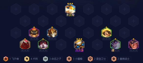 羁绊:4术师 3小蜜蜂 3命运之子 2堡垒卫士 2重装战士