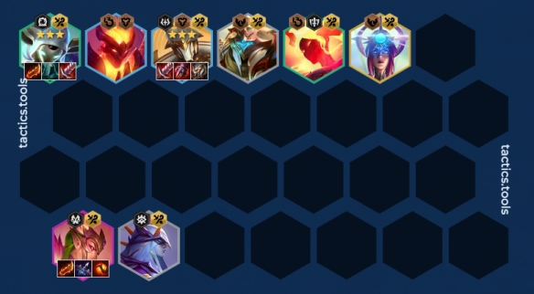 注意:慎如果没三星建议把装备给2星塔姆(实战中并没有过多的经济追三星慎),其次薄暮法袍也可以作为卡莉斯塔轻语的替代