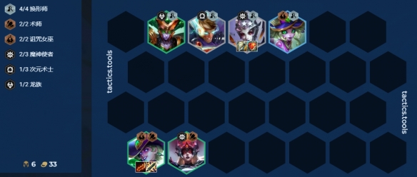 3-5拉7,开始慢D,找到2星猴子,这套阵容不需要急着上八,找到3星猴子比较关键,卡尔玛的C位可以看蛇女的数量替代