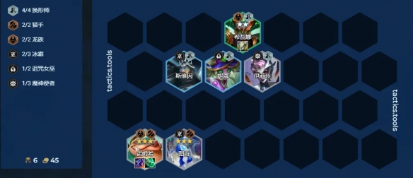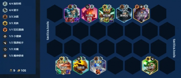 羁绊:4猎手 4换形师 3龙族 3冰霜