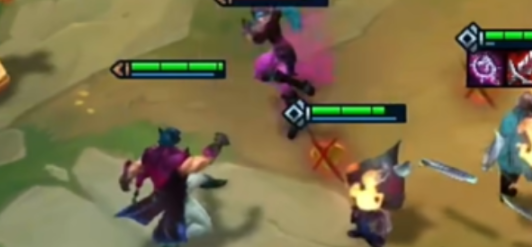 1、将两侧的各一名敌人拽到一起使共相撞并对其造成X魔法伤赛和1.25秒晕眩。