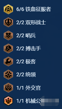 6征服者、1机械公敌、2极客、2双行战士、2哨兵、2搏击手、2统领