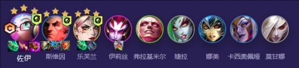 佐伊、斯维因、乐芙兰、伊莉丝、弗拉基米尔、婕拉、娜美、卡西奥佩娅、莫甘娜