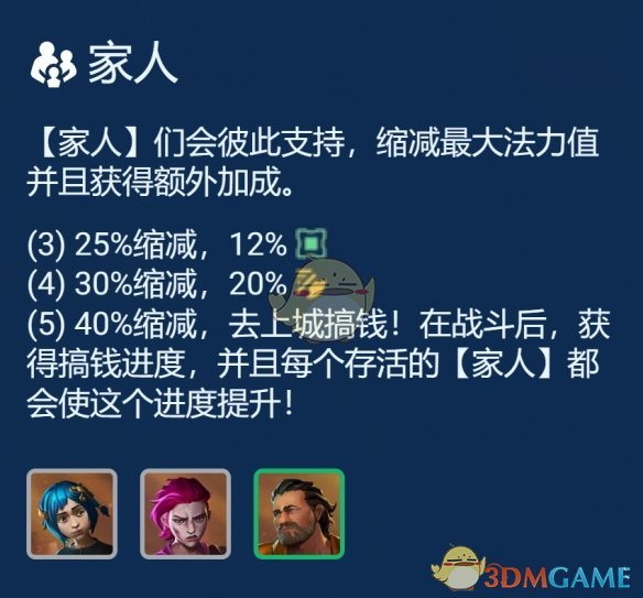 家庭成员互相支持,降低他们的最大法力值并获得额外的加成。