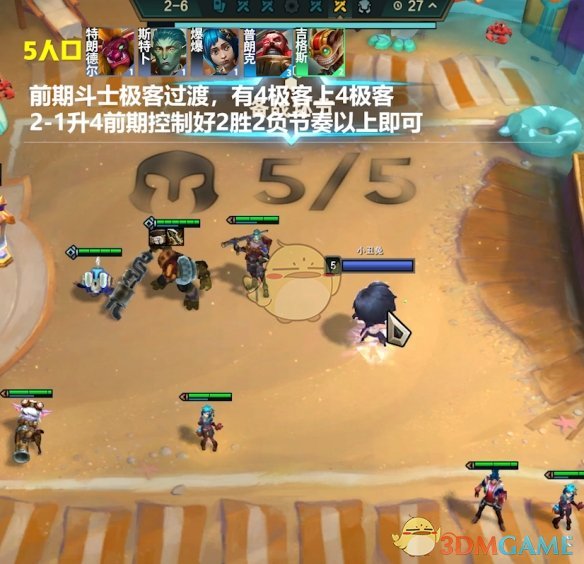 2、开局优先上征服者叠层数,其余挂一费弈子即可。期间均不升人口,第一次选秀优先合成羊刀帮助中期连胜