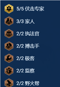 5伏击专家、3家人、2执法官、2搏击手、2极客、2监察、2野火帮