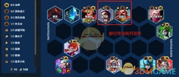 法转由于金锅锅+大棒合成,黑玫由铲子+大棒合成,选秀有其一均可无脑拿。推荐上八D牌,在八级梭哈追三星乌鸦和找到一张妖姬开出8法。
