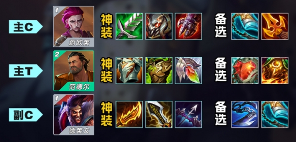 主T范德尔:板甲,狂徒、救赎副c德莱文:羊刀,无尽、轻语