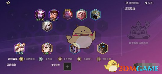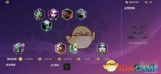 这套阵容比较克制后排脆皮主c,强度仅次于大头,但是对装备的要求比较高,如果开局物理装比较多的时候可以冲。